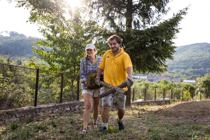 🛠️ V rámci práce budeme pomáhat místním s různými pracemi, jako je například sekání a skládání dřeva 🪓, okopávání brambor nebo natírání. Dále nás čekají drobné udržovací práce na našem tamním obydlí a také v zatáčce (nech se překvapit 🎉).