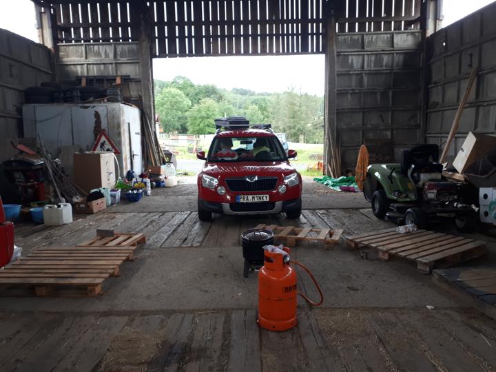 Doprovodné auto s přívěsným vozíkem poveze nádobí na vaření, potraviny, plachty, barel s pitnou vodou, kanystry, takže můžete po celý den jít nalehko jen se svými věcmi. V případě nouze naloží i nemohoucího poutníka. Několika lidem se zdravotními potížemi uveze i batoh.