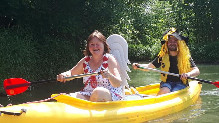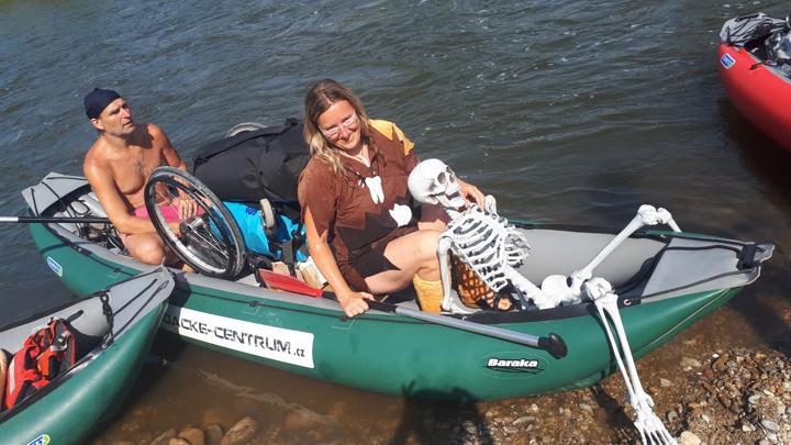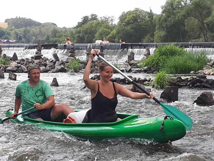 Voda pro mě tentokrát představovala hodně velkou výzvu. Po náročné jarní Moravě jsem byla dost ve stresu, jestli a jak psychicky zvládnu divočejší úseky. Dokázat přijmout, jak rychle voda teče, že nejde zastavit, rozhlédnout se a v klidu si promyslet kudy dál. Nebojovat s proudem a nevyhýbat se za každou cenu všem překážkám. Neotáčet se zpět a neřešit kudy jinudy jsme měli proplout, ale soustředit se na tady a teď. Nestresovat se, že nevím, co je za zatáčkou. Spolehnout se na toho vzadu. Důvěřovat. Dýchat. Teď nejde vystoupit, proud nas nese, kam chce sám. Podřídit se mu, přijmout jeho směr a rychlost paradoxně přináší svobodu. Podstatně líp mi šly klidné úseky – kde musím makat, abych se někam posunula. Čeká mě ještě hodně práce nejen s pádlem v ruce. Moc díky za možnost jet s váma, za organizaci a za trpělivost a pevné nervy kormidelníkům. – Evucha