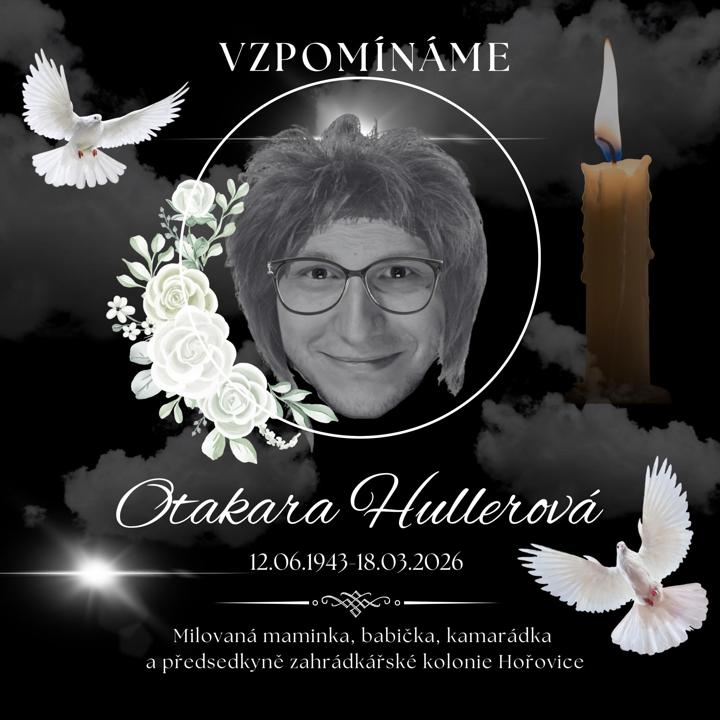Vážení pozůstalí, s lítostí Vám oznamujeme, že dne 18. března 2026 zesne Otakara Hullerová, milovaná maminka, babička, kamarádka a předsedkyně zahrádkářské kolonie Hořovice. Čtení poslední vůle…